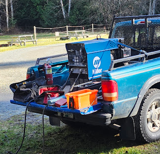 Cab: Andre’s plasma cutter was sold, so Dan cut windows with the tablesaw. 17.5 high, 18 wide, 14 long. Need a roller for the top.