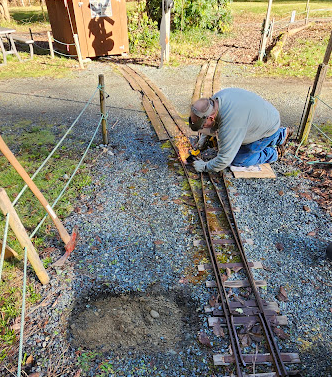 Already done April 2: the track repair in the shed, thanks to Bob, helped by Rob and Dave.