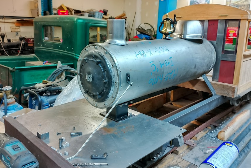 Progress: Mar 4-Dan, Andre, Bob, Dave; Feb 18 – Dan and Dave; Feb 5- Dan and Bob; Jan 28 – Dan and Dave: cab windows and boiler bracket; Jan 21 – Dan, Andre, Dave: mainly the cab; Jan 14 – Dan, Andre, Russ, Stephen, and Dave; boiler front and tender; Jan 7 – Dan, Bob, Russ, Karl, Rick and Dave met for plan discussions plus drilling work on the tender