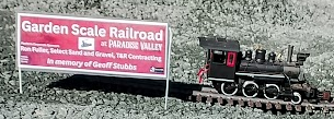 Dave tested a draft G-Scale sign. Well received. Kept small to fit 25:1 G-Scale. More here