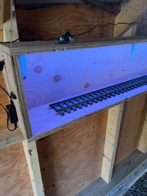 Rob and I (but mostly Rob) finished the G-Scale display case on Sunday. The LED lights are now in and the display doors are able to be secured in either the open or closed positions.